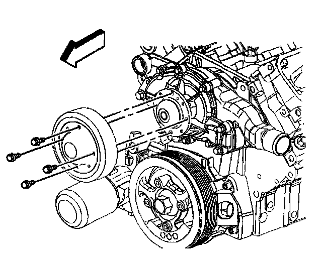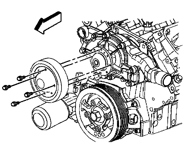 Tighten the coolant pump bolts (1) to 15 Nm (11 lb ft). Use the J 36660-A to torque the coolant pump bolts (1) an additional 80 degrees.