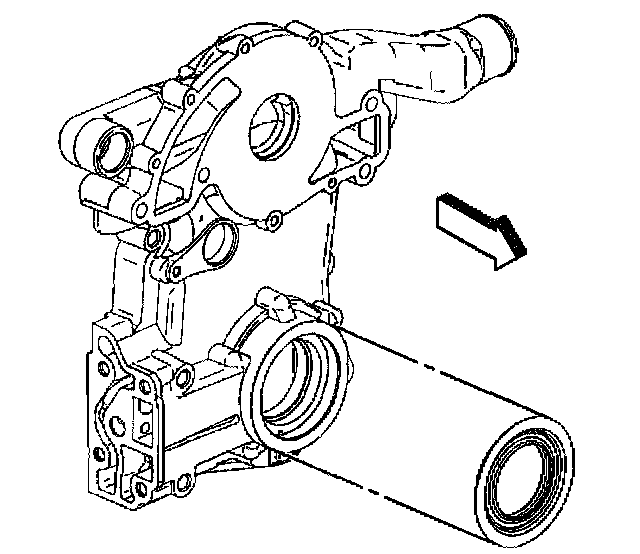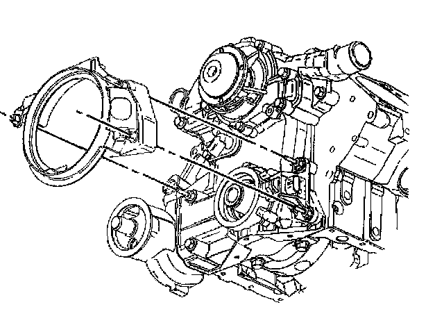 21. Remove the crankshaft front oil seal. Use a screwdriver to pry out the crankshaft front oil seal. Use care in order to avoid damage to the seal bore or seal contact surfaces.