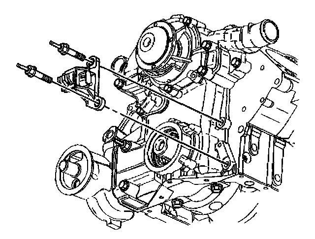 Tighten the front cover bolts (1) and stud (2) to 20 Nm (15 lb ft). Use the J 36660-A to torque the front cover bolts (1) and stud (2) an additional 40 degrees.