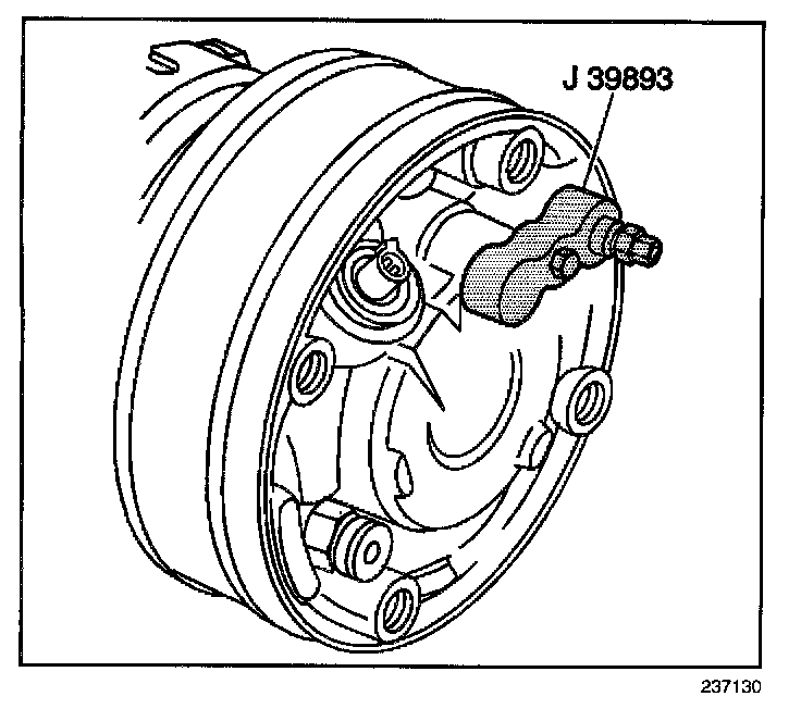 1. With the sealing washers in place, install the J 39893 on the rear head of the compressor.