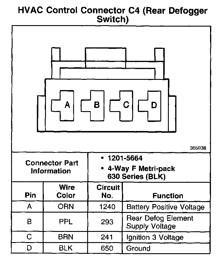 HVAC Control Connector C4 (Rear Defogger Switch):