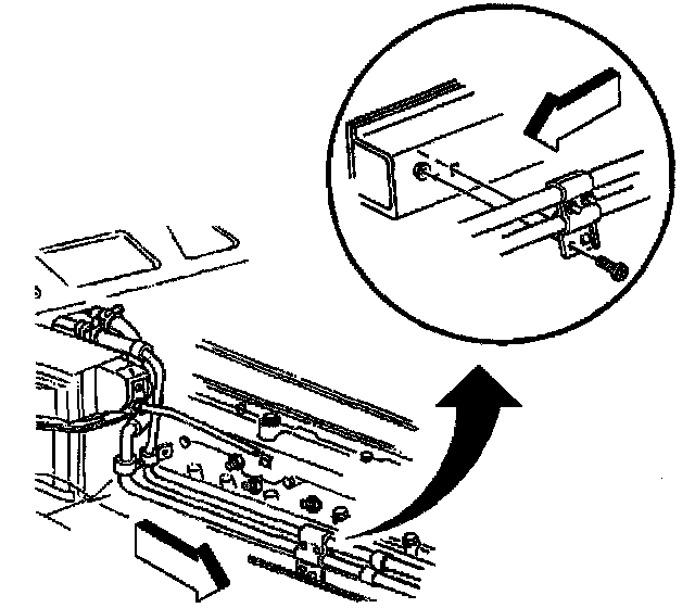 4. Install the bolt attaching the inlet and outlet heater hose bracket to the mid rail.