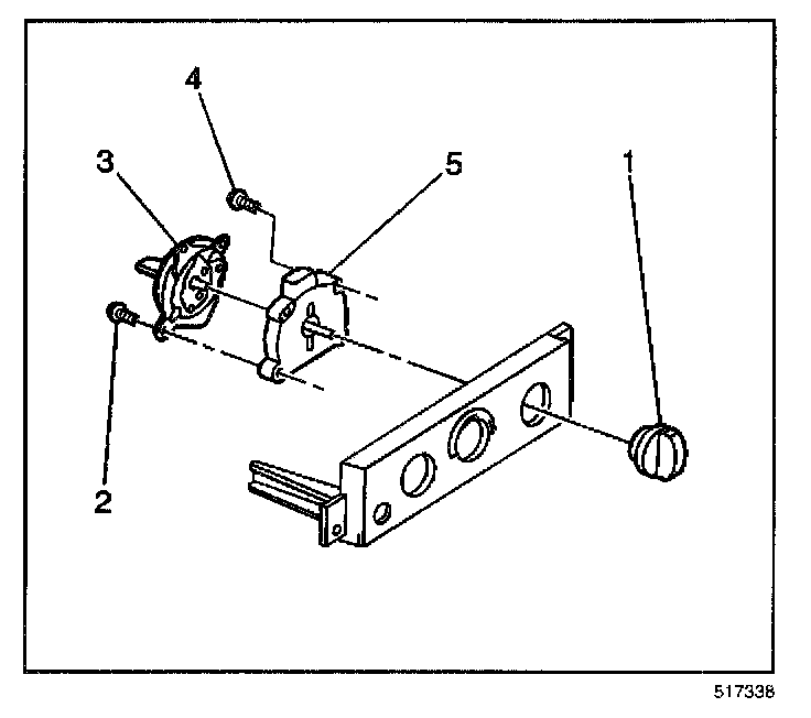 1. Install the HVAC control assembly vacuum valve (3) to the selector switch (5).