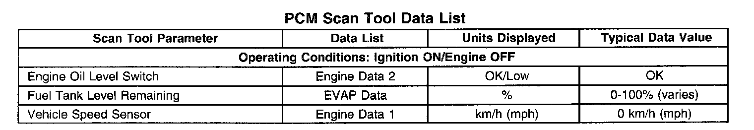 Scan Tool Data List - Powertrain Control Module (PCM)