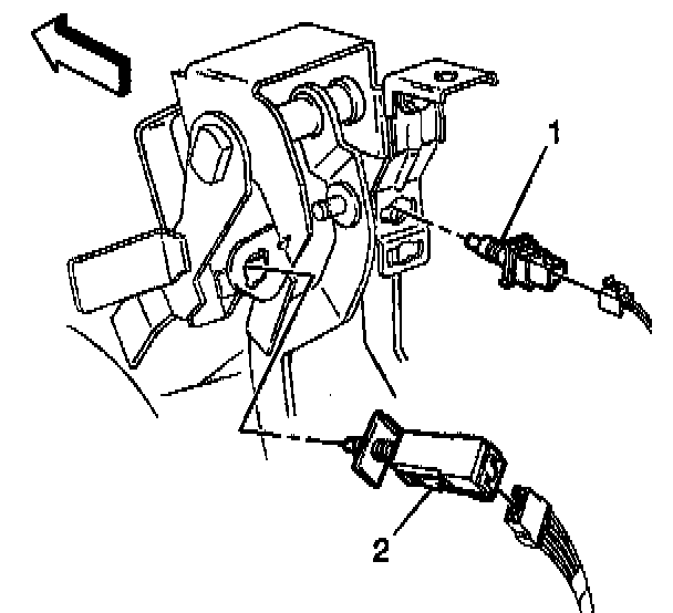3. Remove the clutch anticipate switch (2) from the pedal bracket assembly.