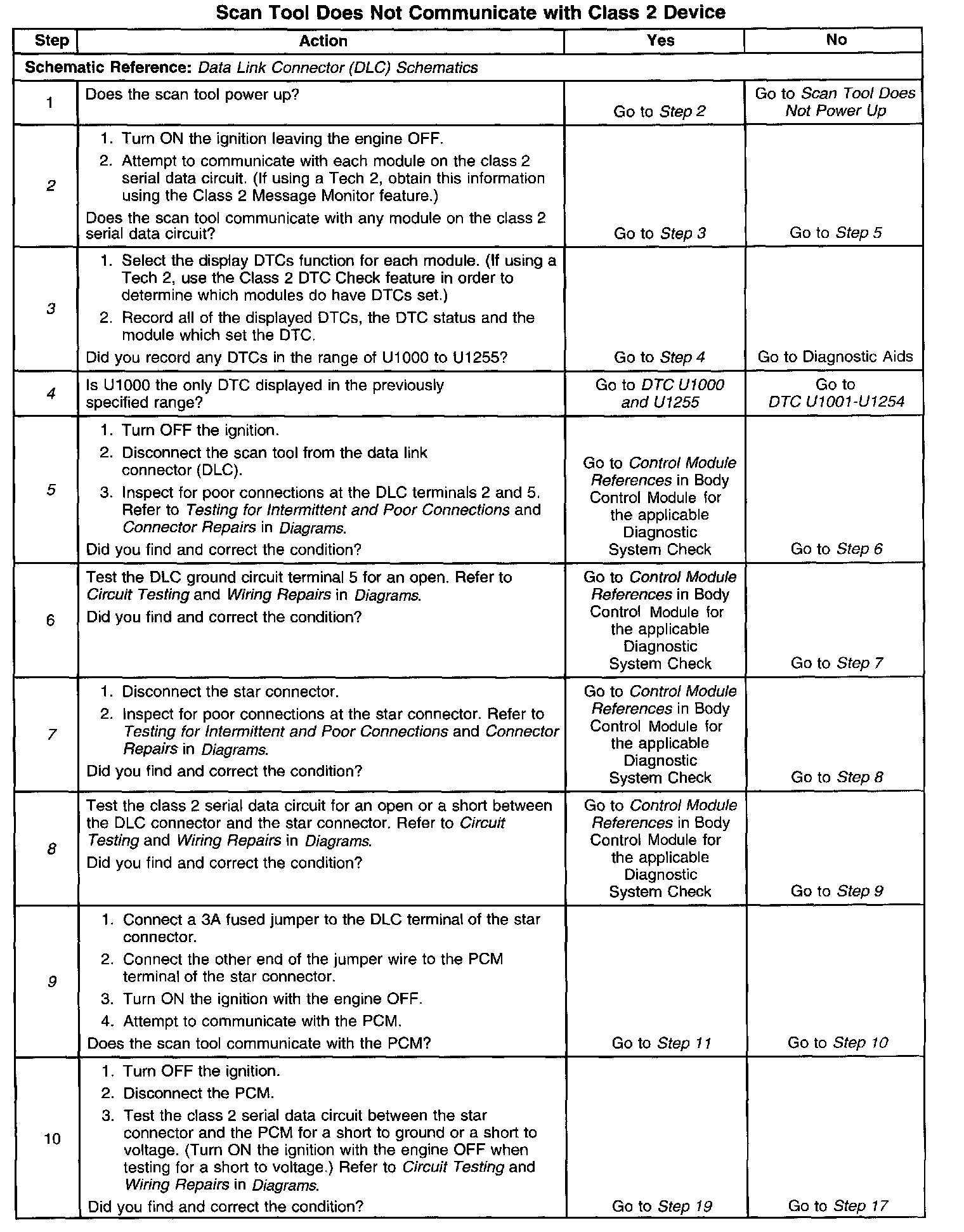 8. An open in the class 2 serial data circuit between the DLC and star connector will prevent the scan tool from communicating with any module. This condition will not set a DTC.