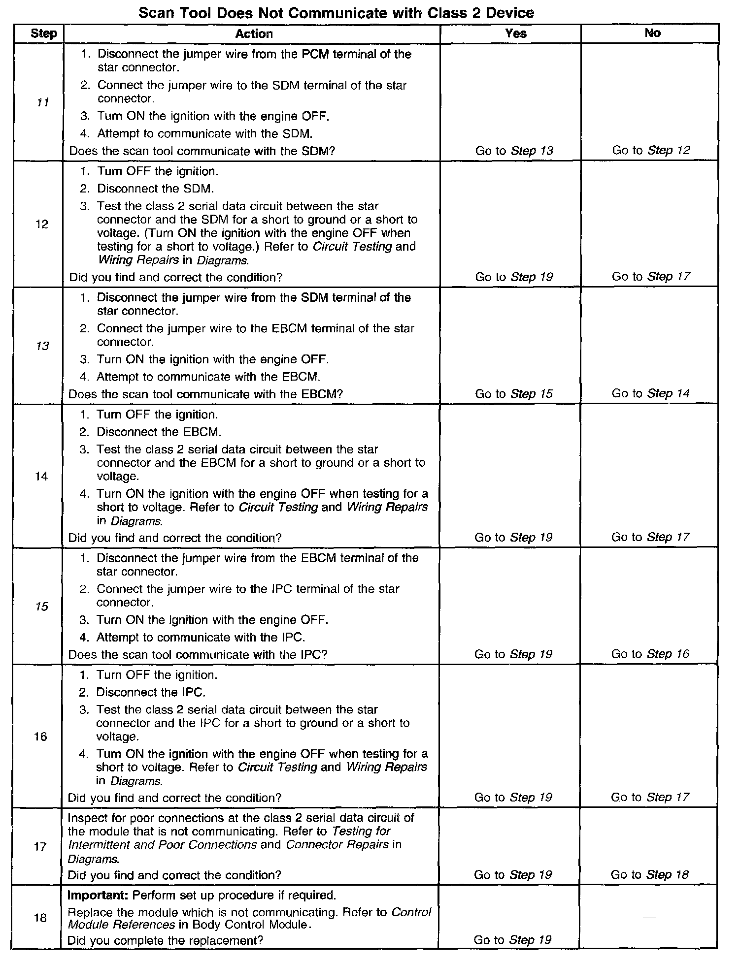 9. The class 2 serial data circuit is shorted to voltage or ground. The condition may be due to the wiring or due to a malfunction in one of the modules. When testing the wiring for a short, make sure there is not a module connected to the wire being tested. This test isolates the PCM class 2 serial data circuit.