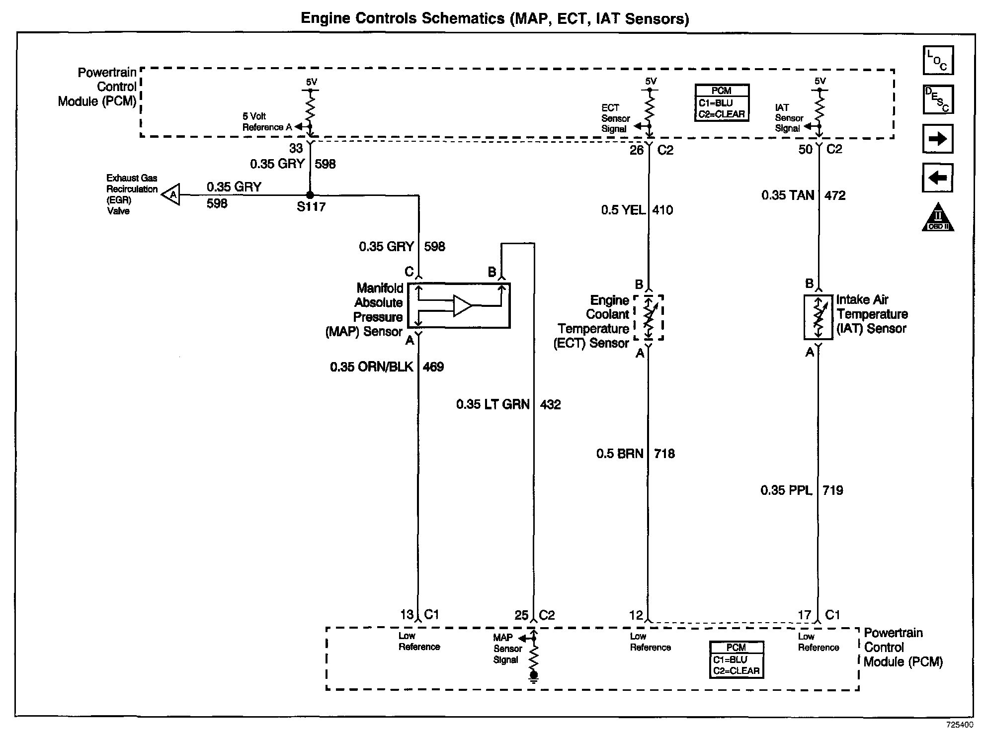 Engine Control Schematics: MAP, ECT, IAT Sensors:
