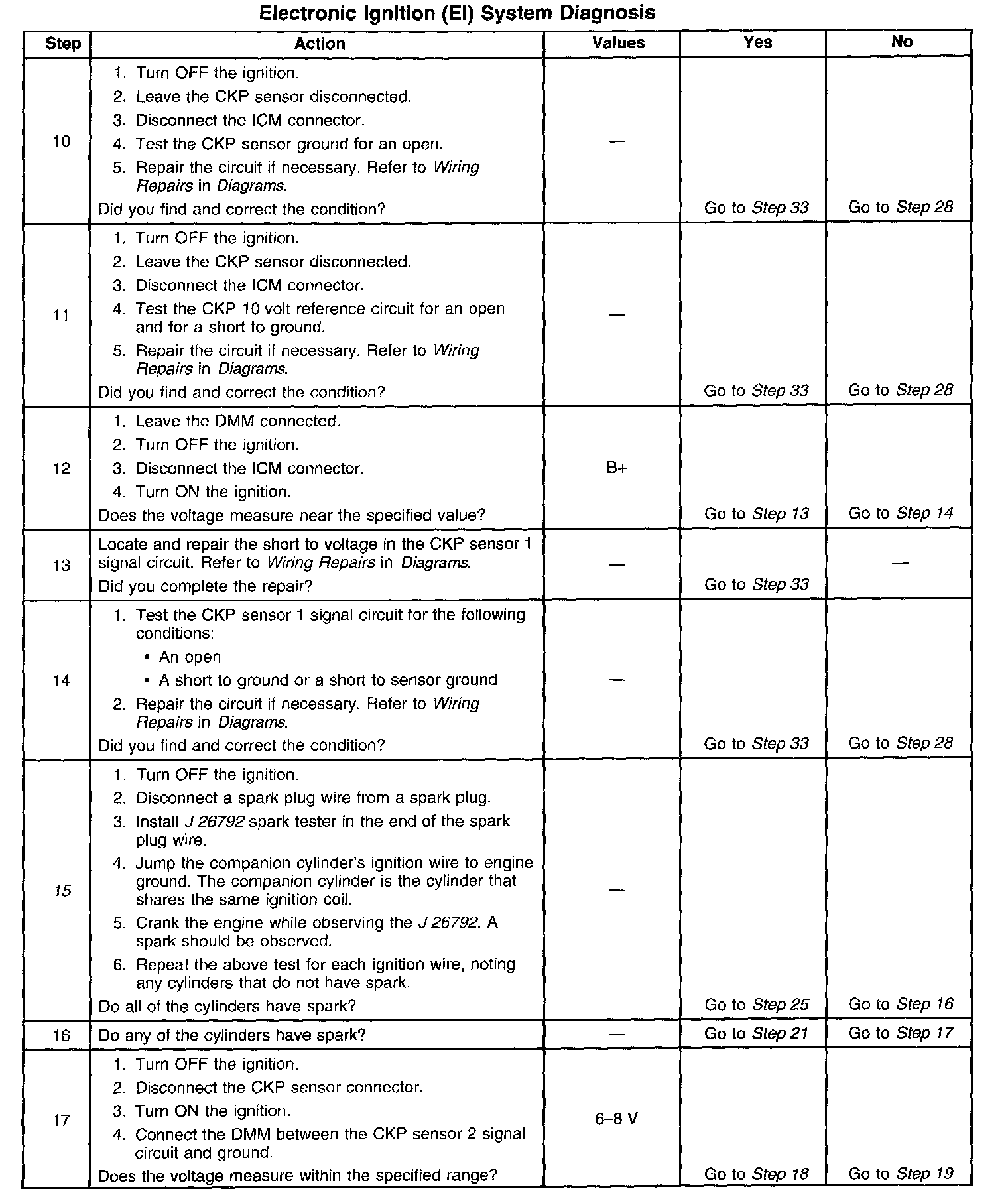 15. Check for the proper operation of the CKP sensor 2 signal, IC module and related spark system components. Without the CKP sensor 2 signal the IC module is unable to properly sequence the ignition coils.