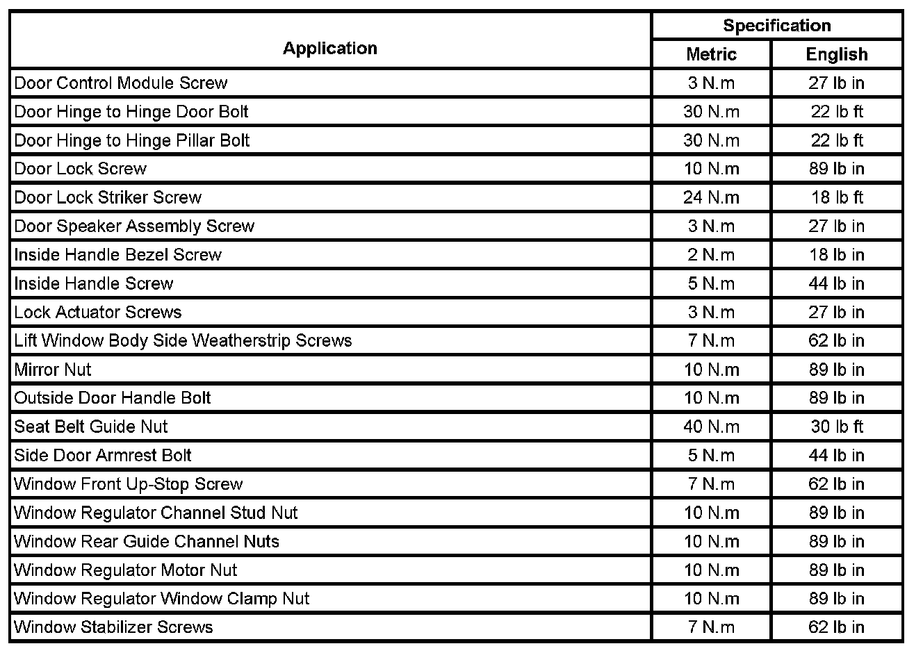Fastener Tightening Specifications