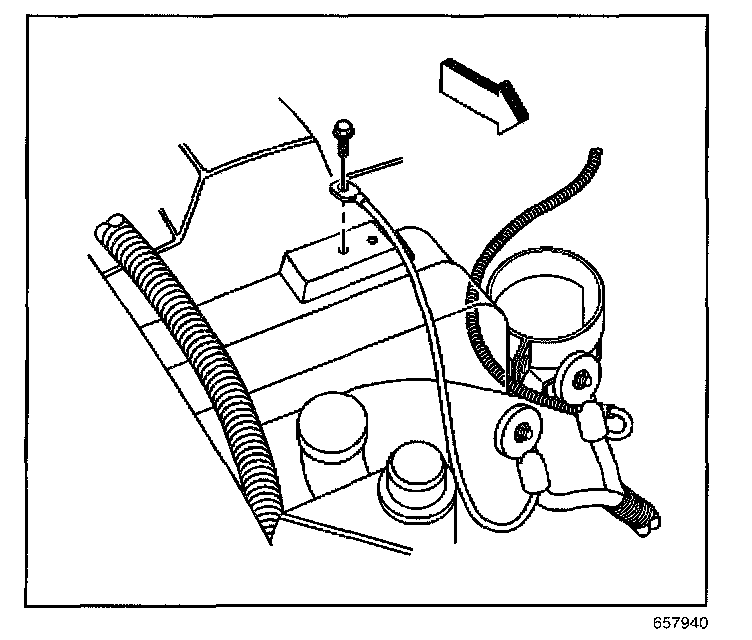 3. Install the negative cable nut to the engine block stud.