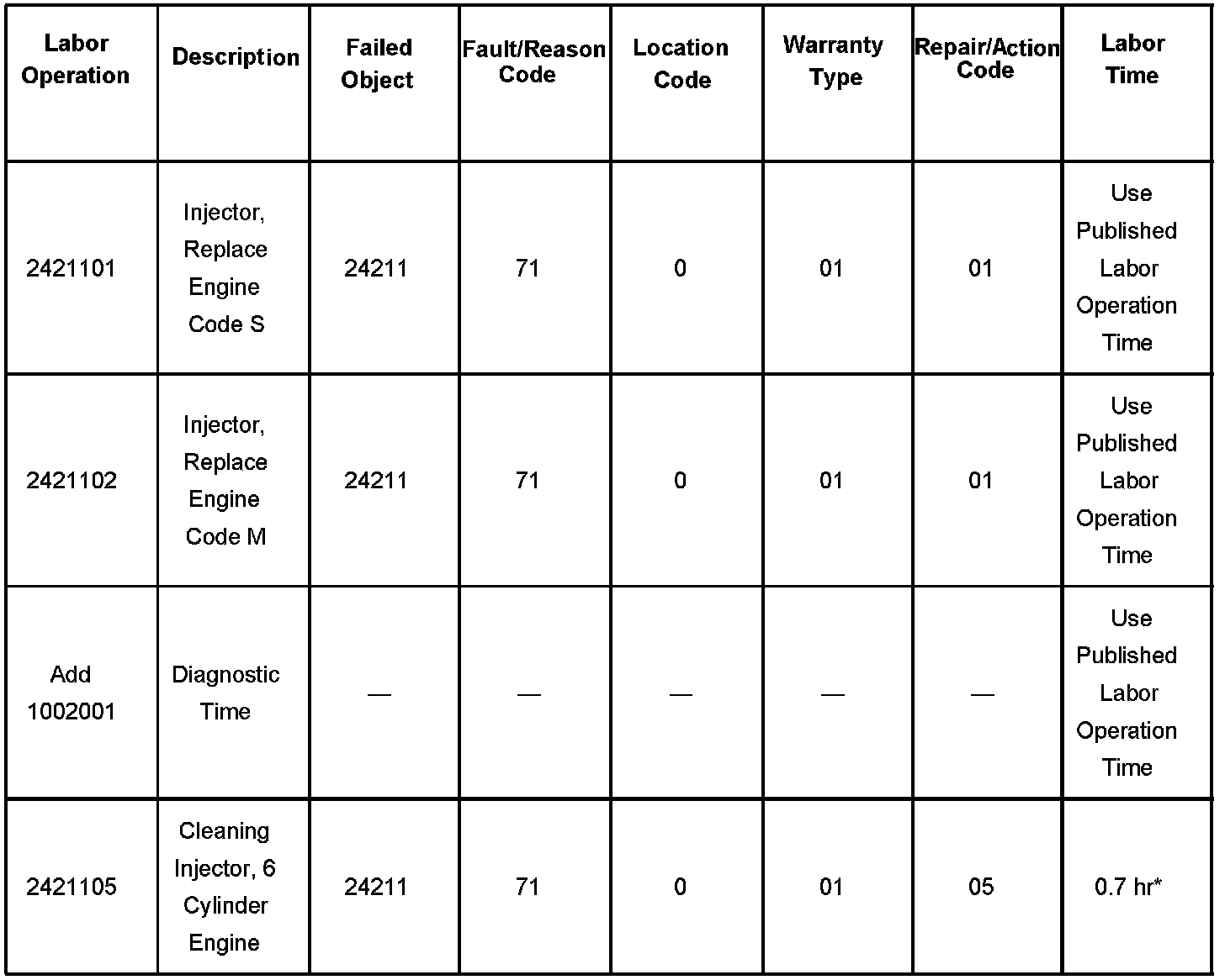 For vehicles repaired under warranty, use the table.