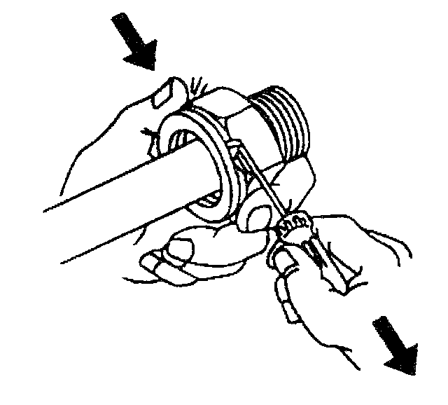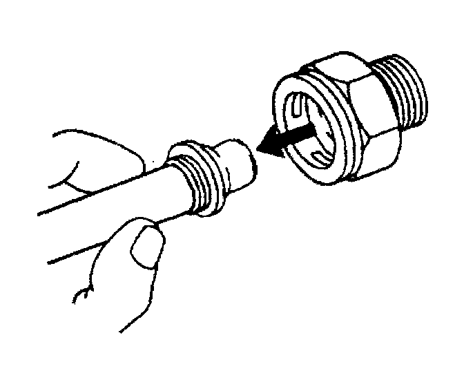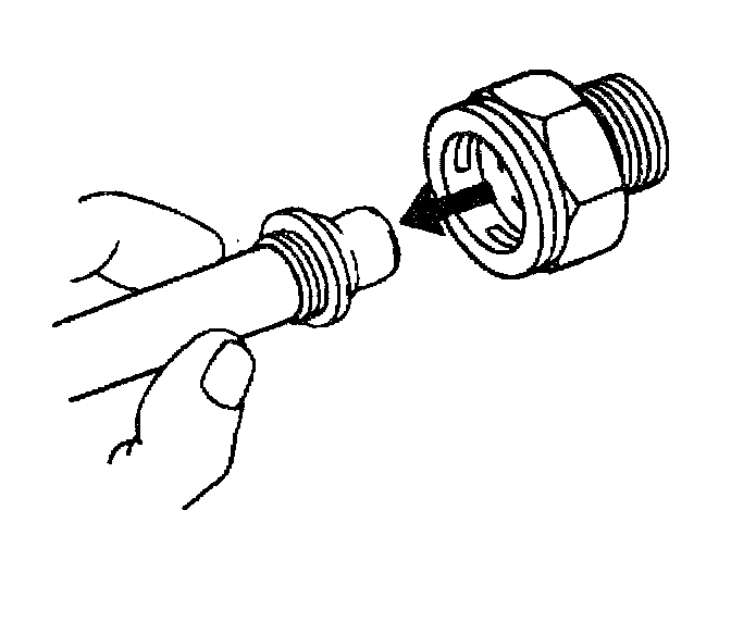 Important: If you cannot position the plastic cap against the fitting, remove the retaining ring from the quick connect fitting per Step 5 of the cooler line removal procedure. Check the retaining ring and the tube end in order to ensure neither is bent. Replace the cooler line or the retaining ring if necessary, and reinstall per Step 2 of the cooler line installation procedure.