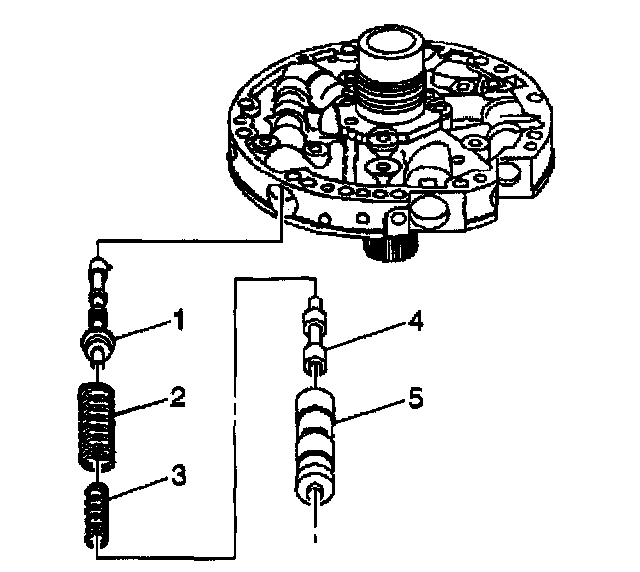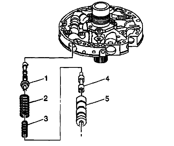 6. Remove the pressure regulator isolator spring (3) and the pressure regulator valve spring (2).