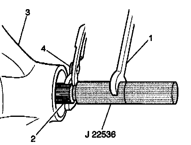 6. With channel-locking pliers (4) and a wrench (1), Install J22536 to the differential drive pinion gear (2).