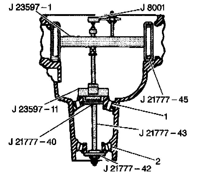 8. Install the J21777-45 onto the J23597-11. Position this unit into the rear axle housing.