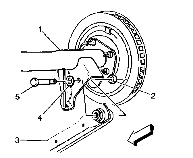 2. Install the lower control arm-to-rear axle baits (5), washers (4), and nuts (2).