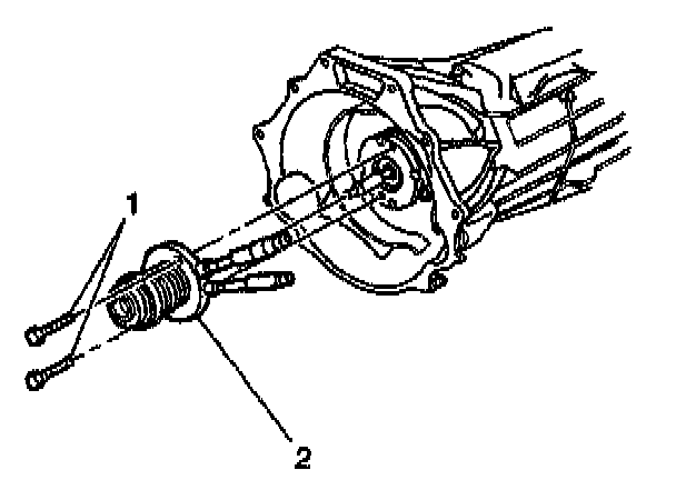 1. Install the flywheel/clutch housing (1) and clutch actuator cylinder to the transmission (2).