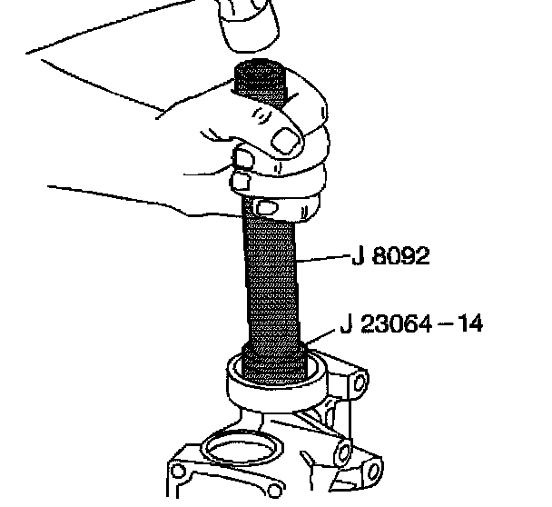 1. Install a new bushing in the extension housing using the J 23062-14 and the J 8092.
