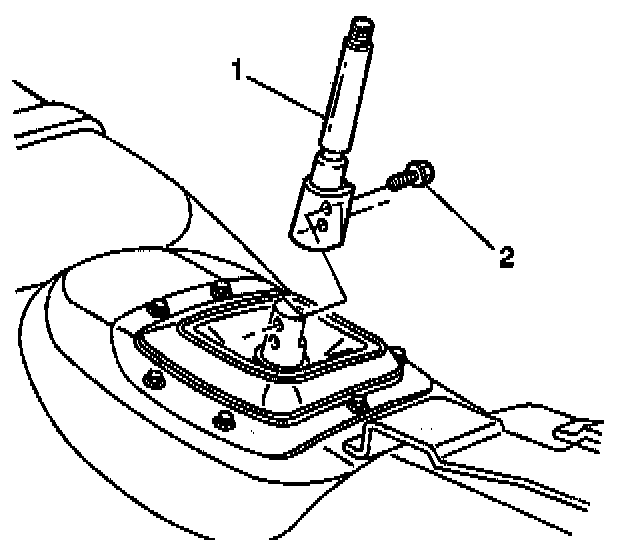 1. Install the control lever boot (1) to the control lever (2).