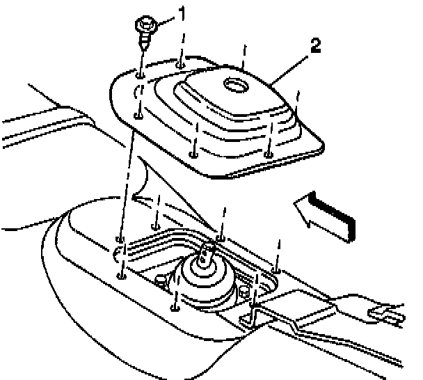 ^ Tighten the shift control closeout boot bolts (1) to 2 Nm (18 inch lbs.).