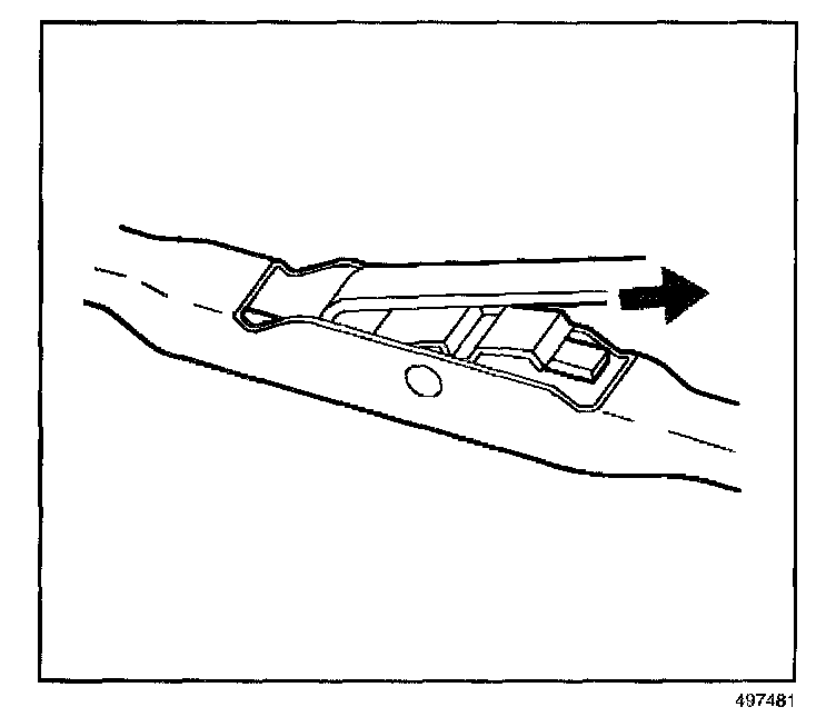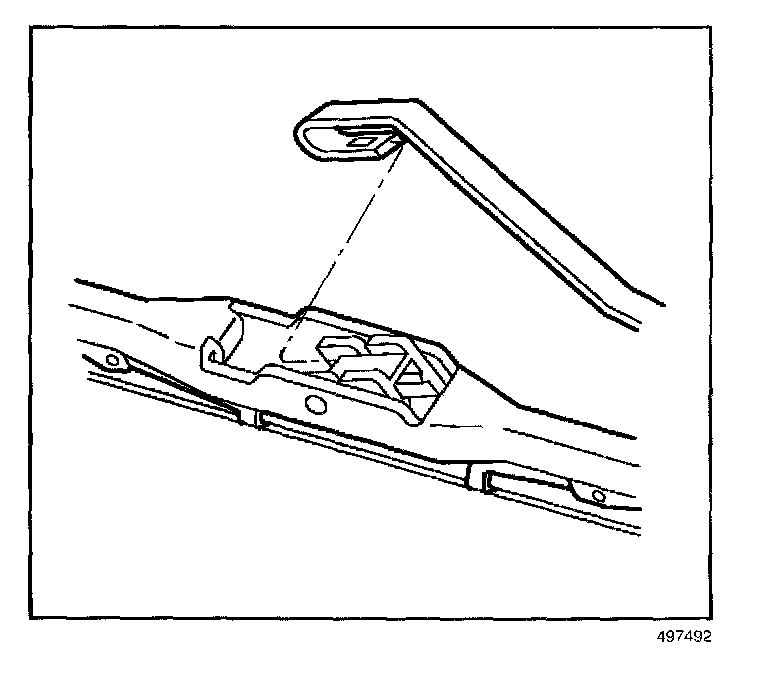 REMOVAL PROCEDURE1. Push in the button of the wiper blade clip and remove the wiper blade from the inside radius of the wiper arm.