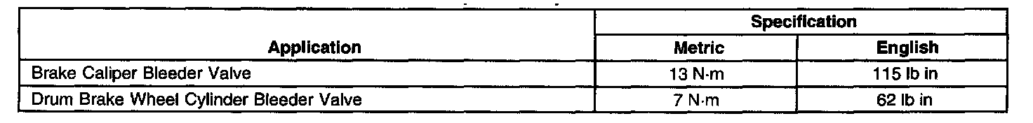 Brake Component Specifications