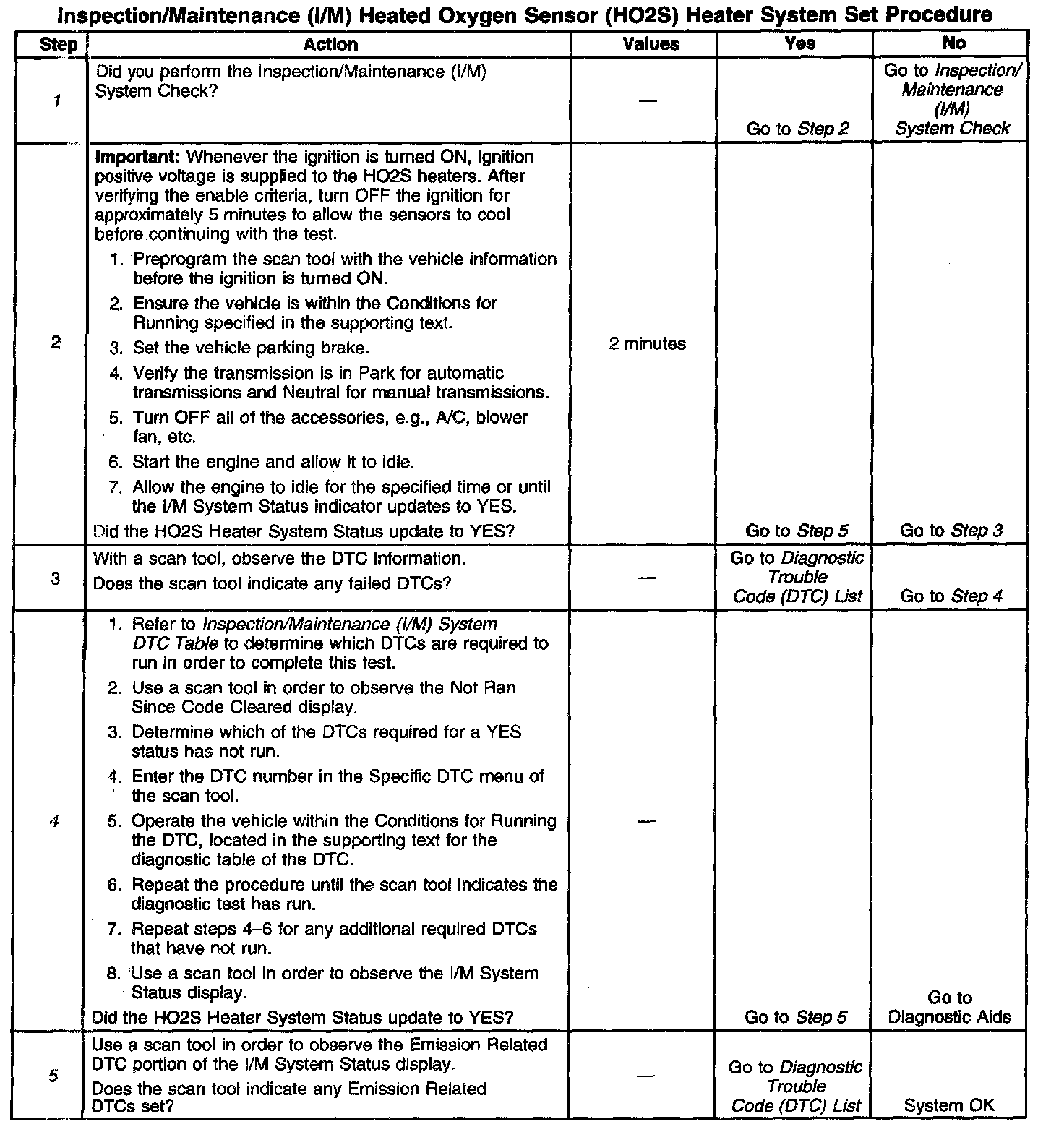 I/M Heated Oxygen Sensor (HO2S) Heater System Set Procedure