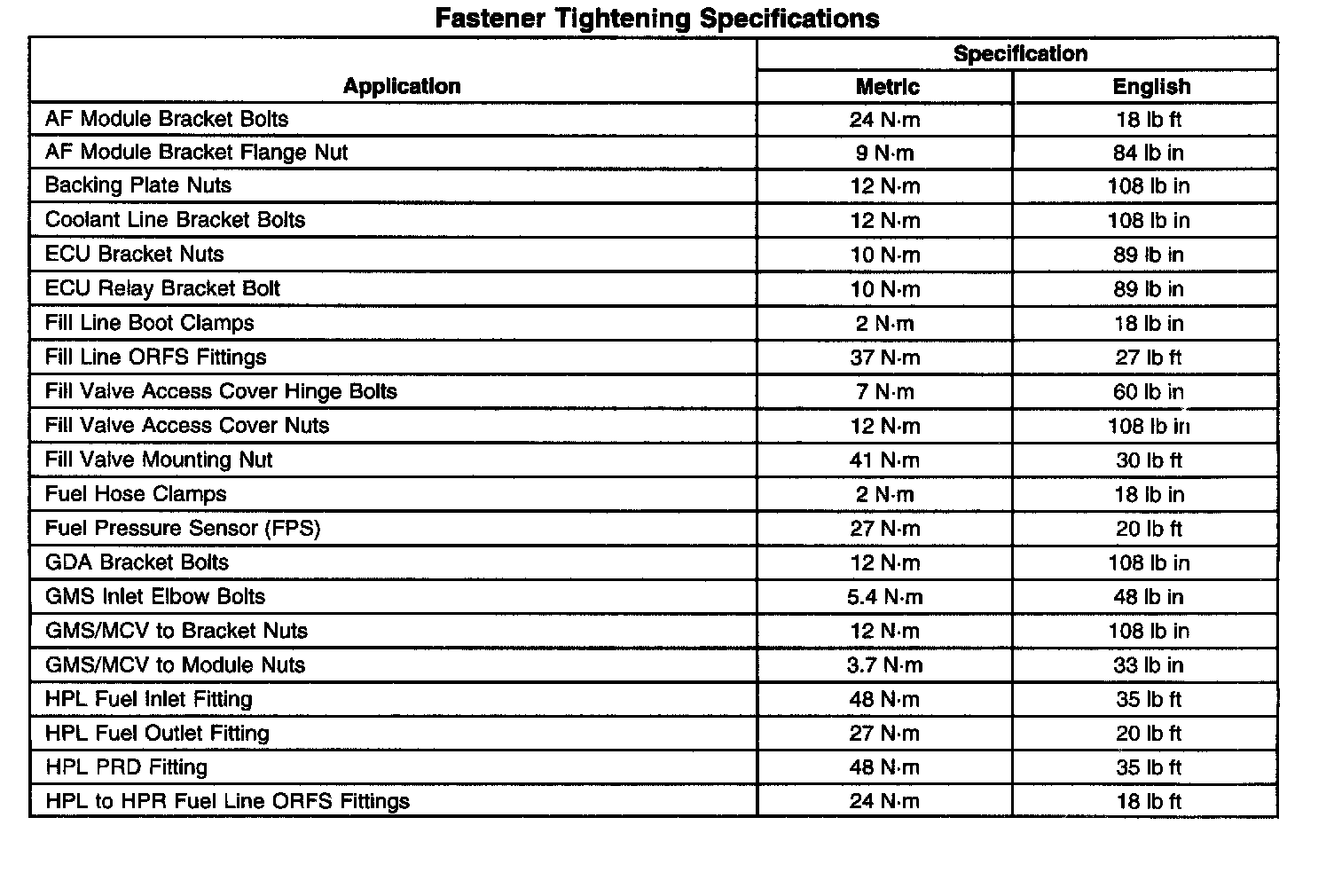 Fastener Tightening Specifications