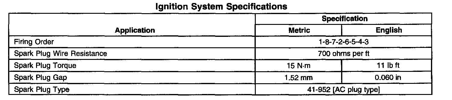 Ignition System Specifications: