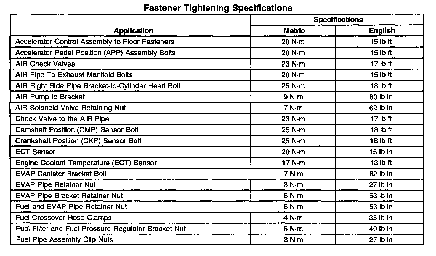 Fastener Tightening Specifications (Part 1 Of 2):