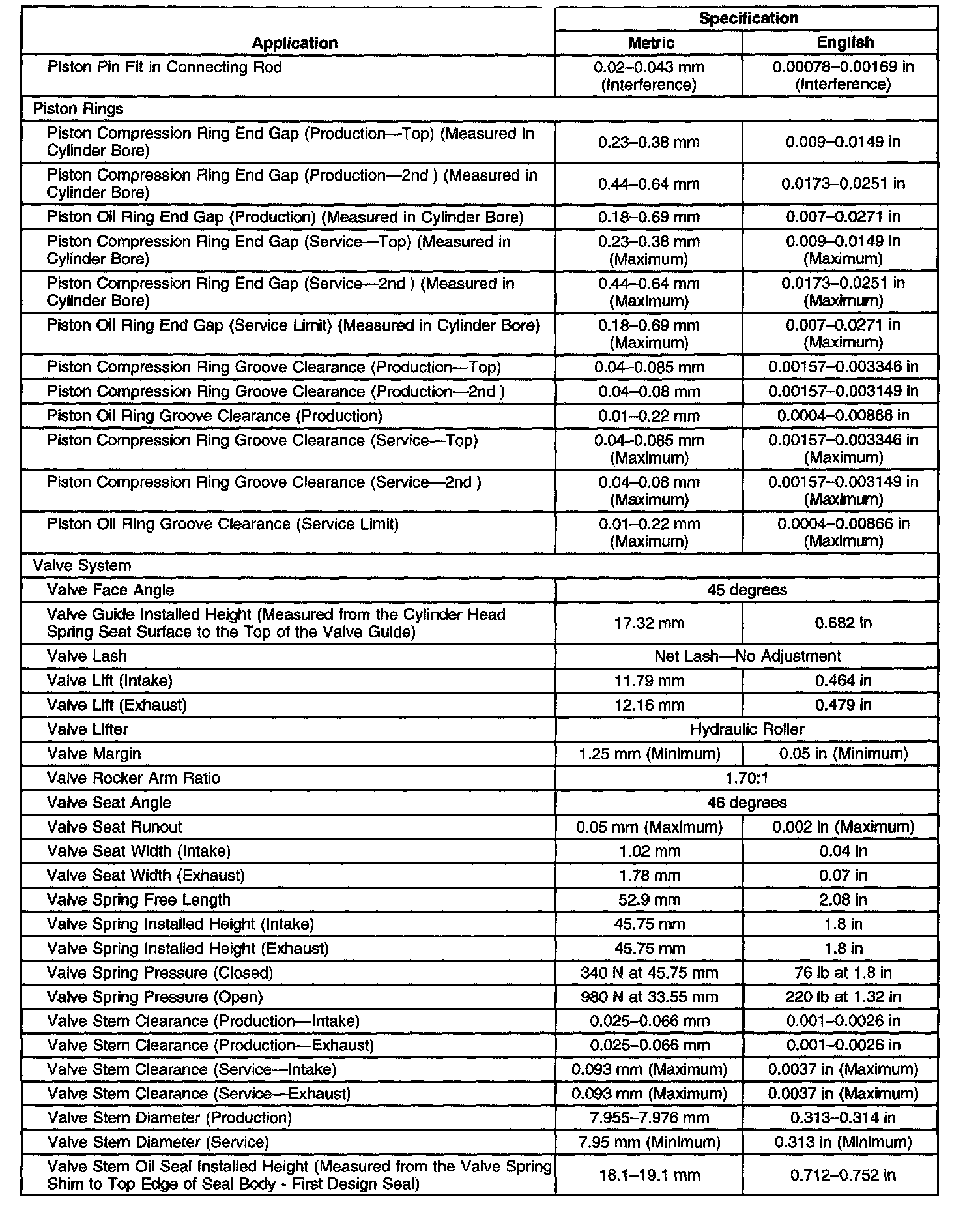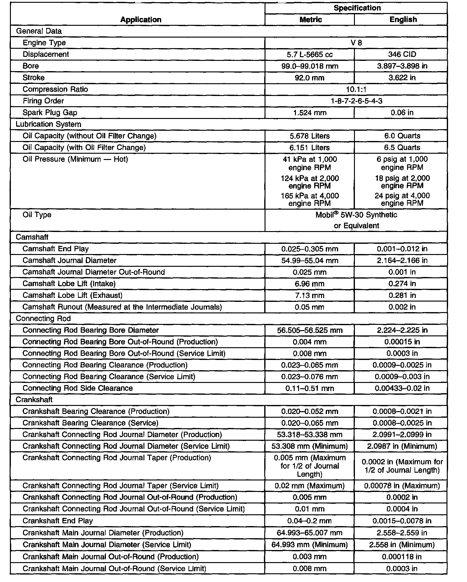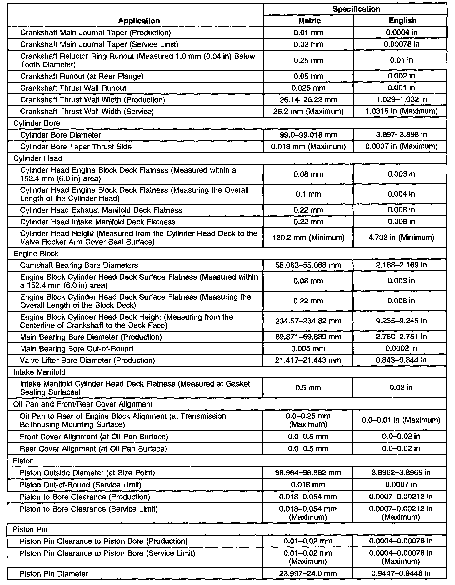 Engine Mechanical Specifications-Unit Repair