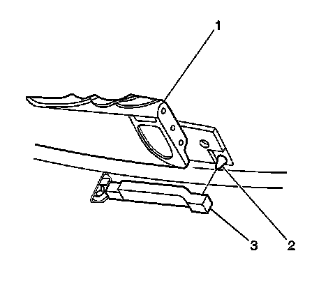 7. Check the alignment of the front latch pins (2) with their receivers (3).