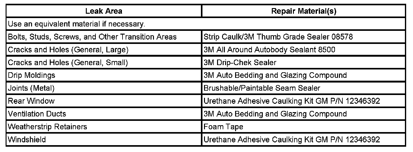 Recommended Materials (Waterleak Repair)