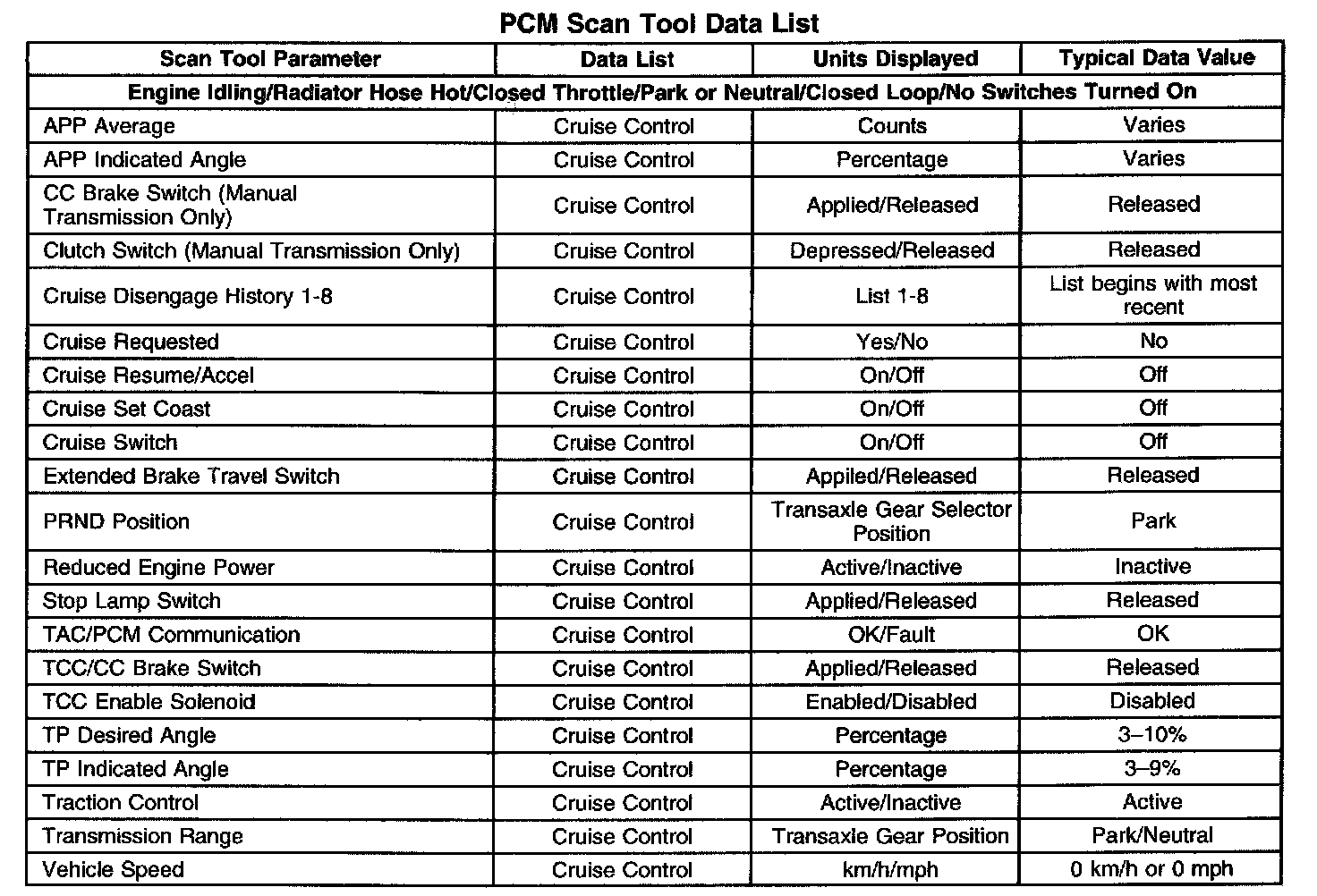 PCM Scan Tool Data List: