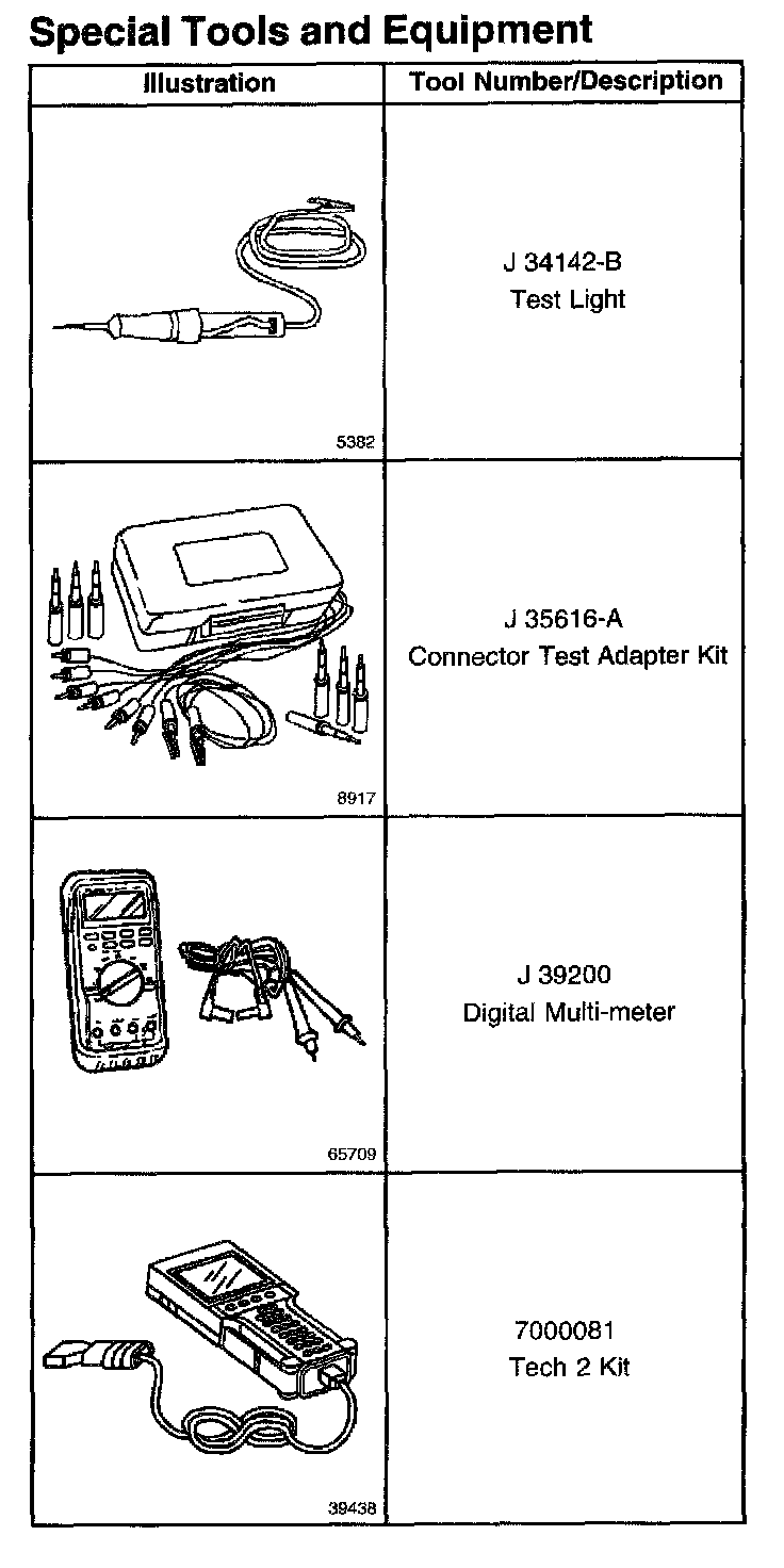 Special Tools And Equipment: