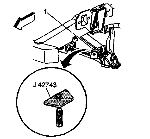 Important: When adjusting the spring adjuster bolt, J 42743 must be used in order to prevent damage to the rubber shear pad on the end of the bolt. One complete turn of the spring adjuster bolt is equal to 2 mm (5/64 inch).