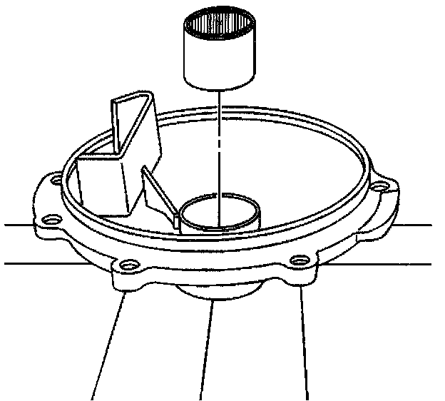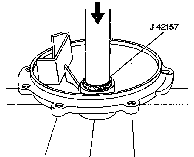 3. Install the bearing into the cover (left) using the J 42157 and a hydraulic press.