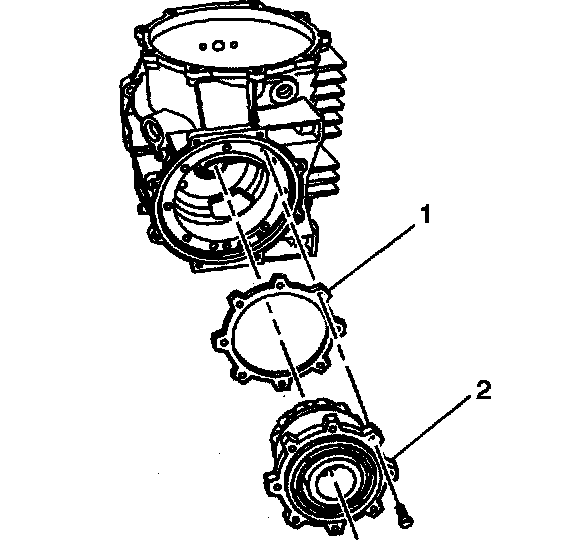6. Install the pinion housing assembly (2) and the selected shim(s) (1) to the differential housing.