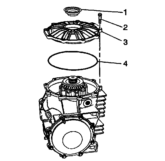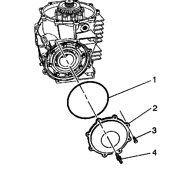 17. Install the cover (rear) (2), bolts (3), bolt stud (4), and O-ring (1).