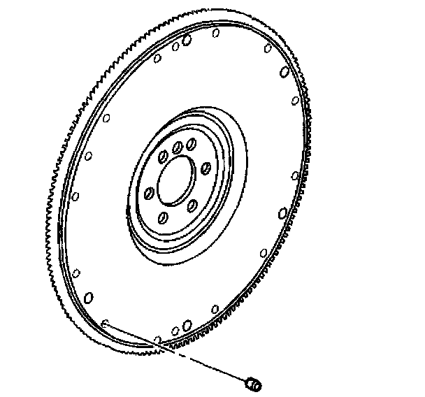 6. Apply threadlock GM P/N 12345382 or equivalent to the threads of the flywheel bolts.