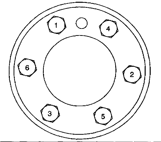 7. Install the engine flywheel bolts until snug.