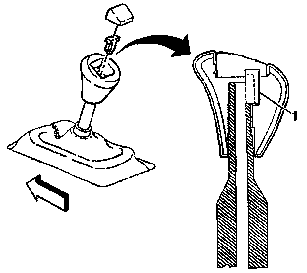 3. Install the shift control knob retainer (1) into the slots and seat fully.