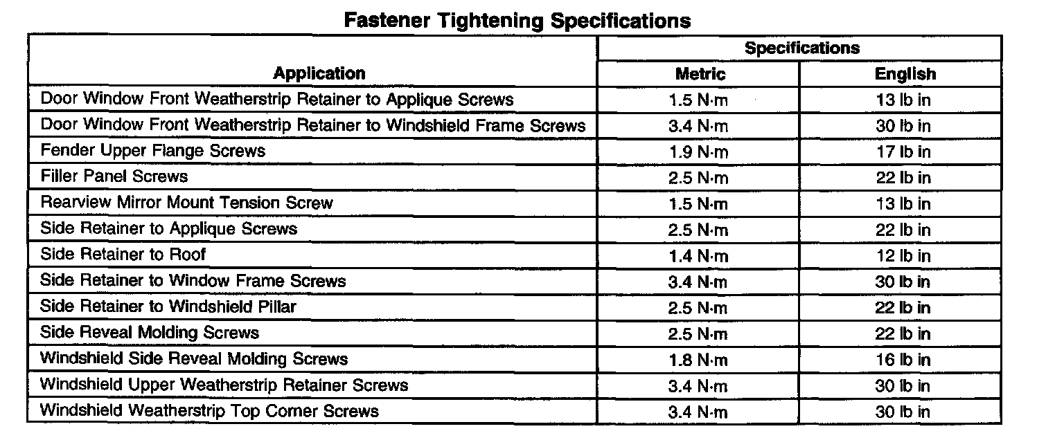 Fastener Tightening Specifications: