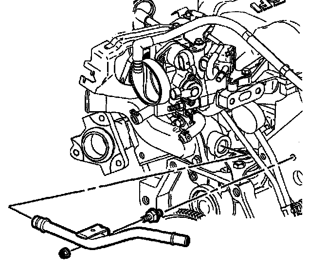 15. Disconnect the thermostat bypass hose from the thermostat bypass pipe and lower intake manifold pipe.