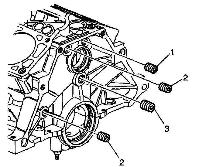 2. Remove the rear oil gallery plugs (1, 2, 3).
