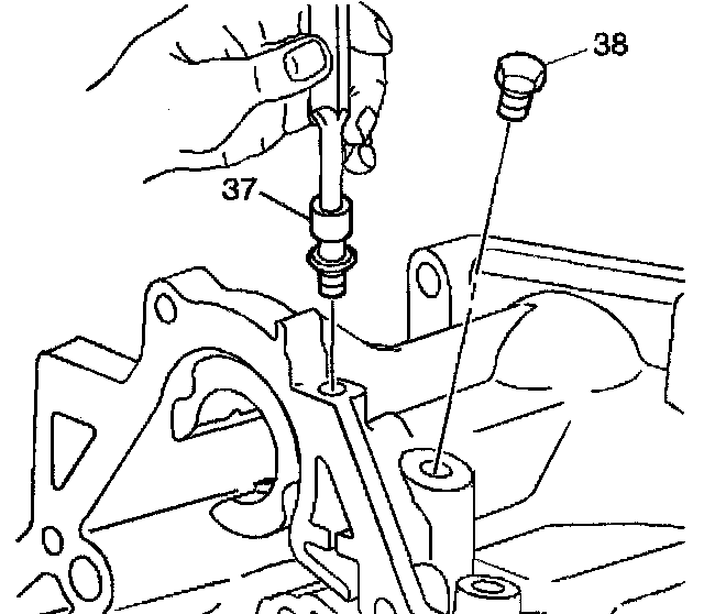 2. Apply sealant GM P/N 12345382 to the oil pressure test hole plug (38).