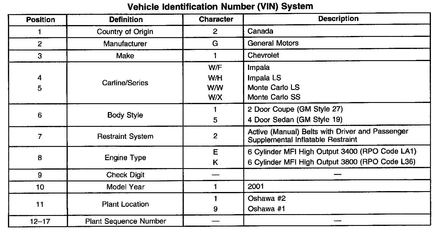 Vehicle Identification Number (VIN) System:
