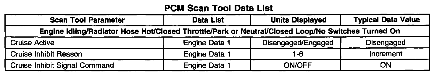 Scan Tool Data List - Powertrain Control Module (PCM)