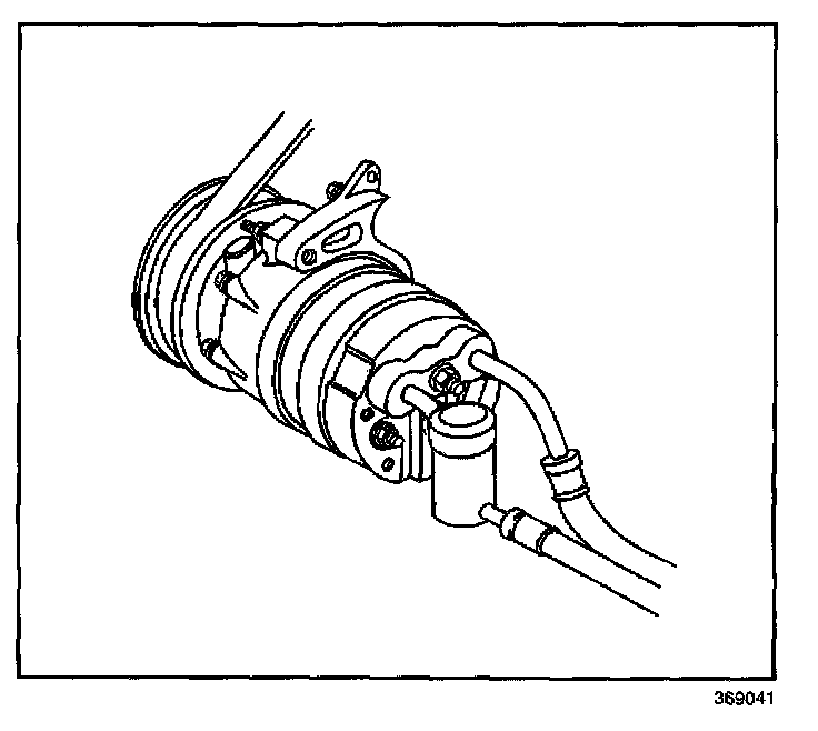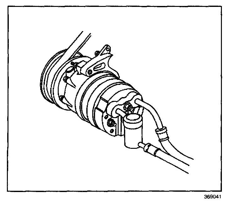8. Remove the A/C compressor hose assembly from the rear of the A/C compressor.